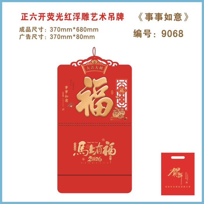 六开福字金箔金雕挂历D