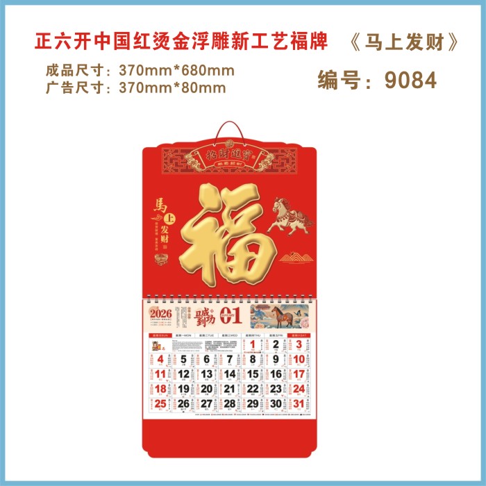 六开福字金箔金雕挂历E