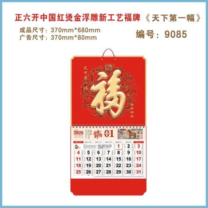 六开福字金箔金雕挂历E