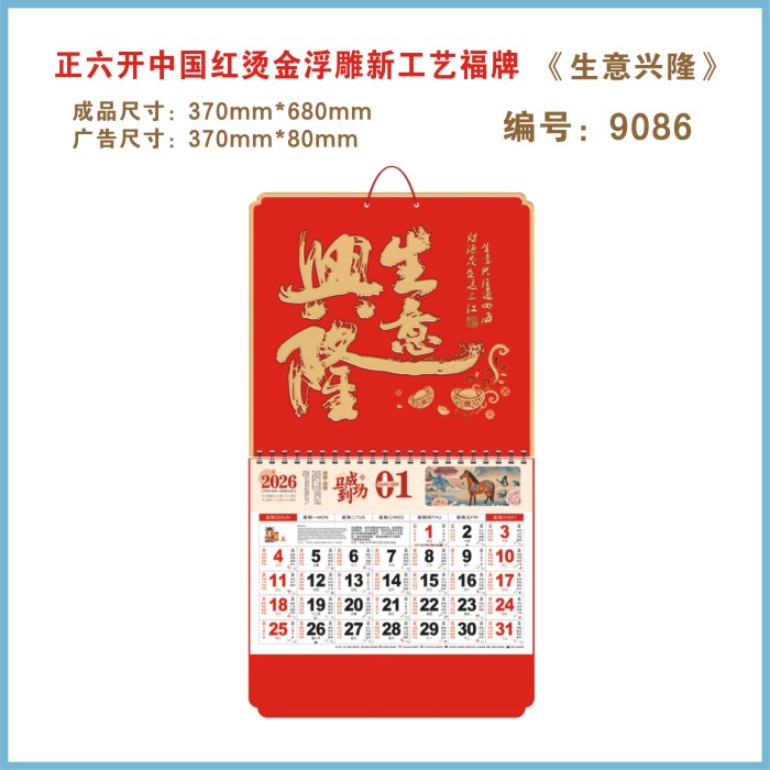 六开福字金箔金雕挂历E