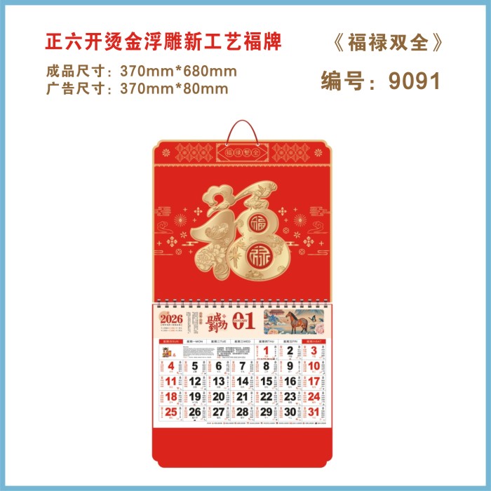 六开福字金箔金雕挂历E