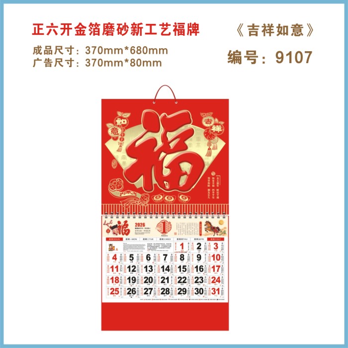 六开福字金箔金雕挂历E