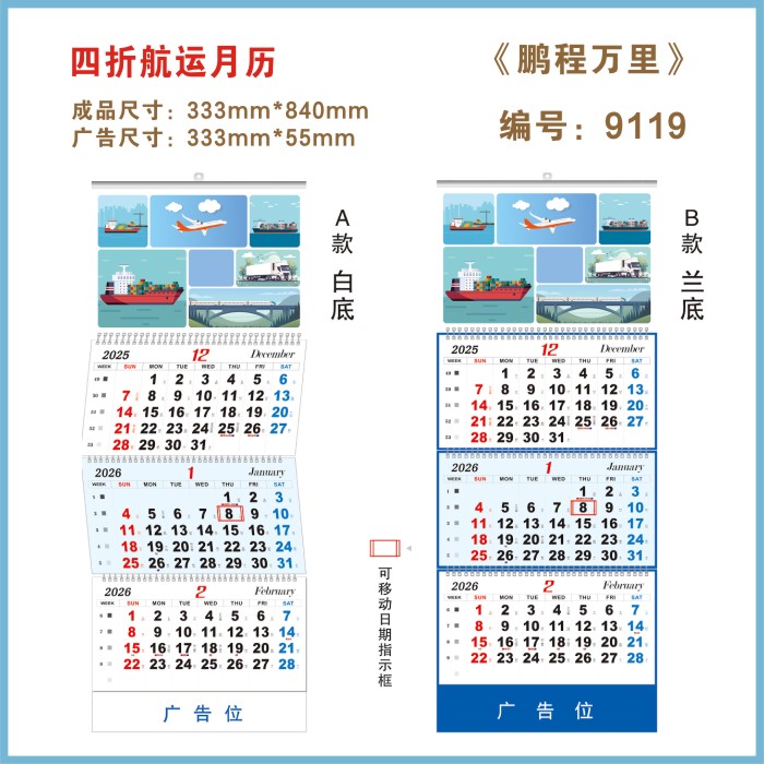 四折航海航运吊牌月历
