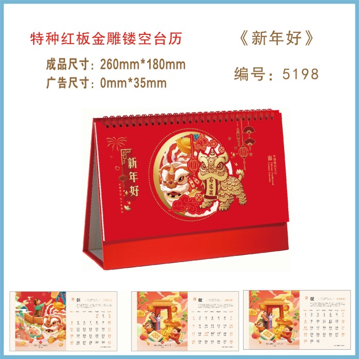 红板金雕镂空台历