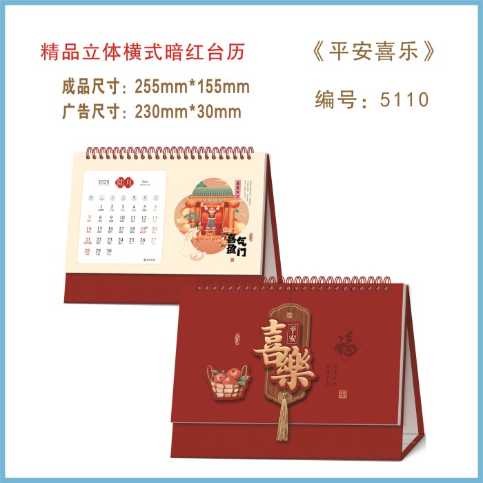 立体横式暗红台历