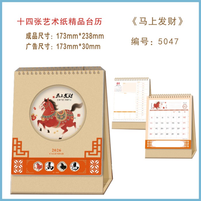 马年旺财工艺台历