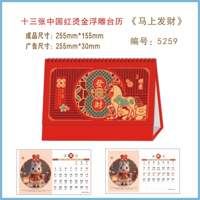 马年旺财工艺台历