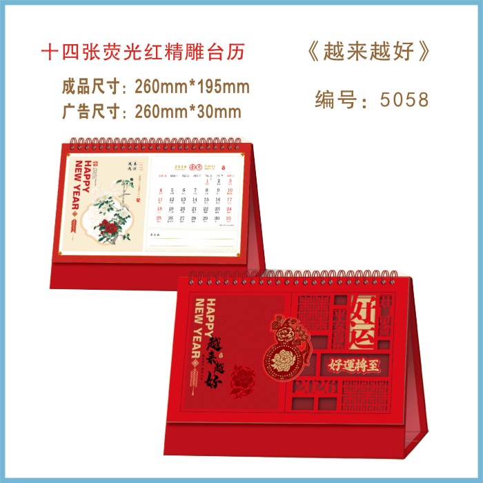 荧光精雕工艺台历